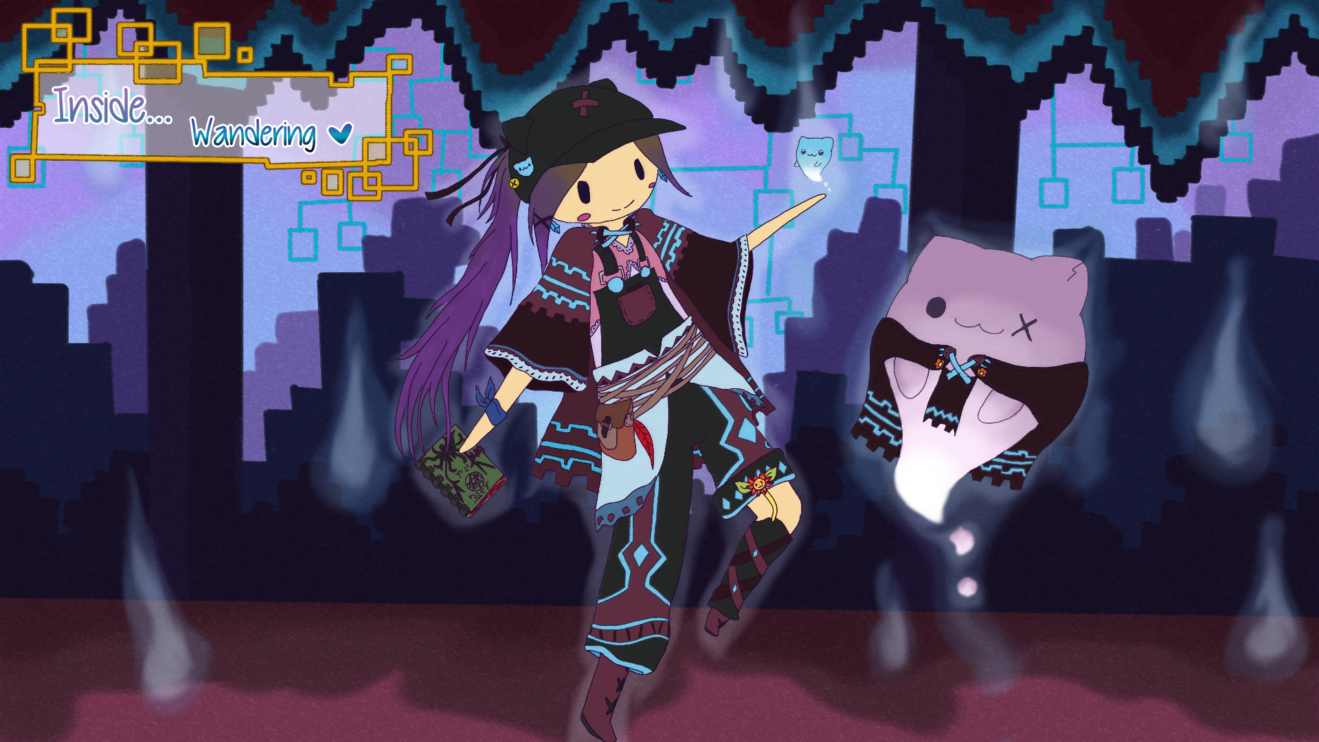 Bonjour à tous ! Cette fois ma soeur m’a demandé de dessiner le mot « Errant » ~ Alors j’ai fait de mon mieux et je me suis dessinée en nécromancienne errante, qui invoque plein d’âmes de chats errants ! >3< J’espère que vous l’aimerez, j’y ai passé beaucoup de temps!