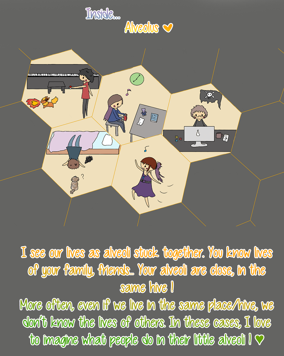 Mon copain a proposé le mot Alvéoles ! J’adore ce mot, il m’a beaucoup inspiré !
