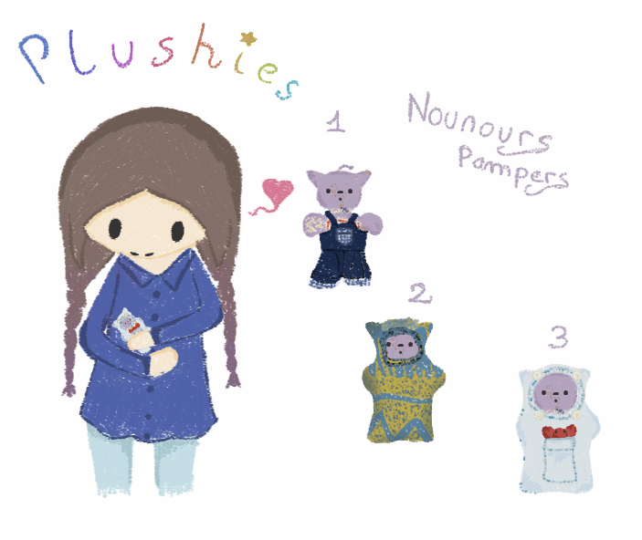 Le premier Plushies ne pouvait être que sur la première peluche que j’ai eu dans ma vie (nous avons maintenant bientôt 26 ans). Elle a souffert de nombreuses fois, du coup on lui a fabriqué des pyjamas protecteurs (fait par ma soeur) ♥
