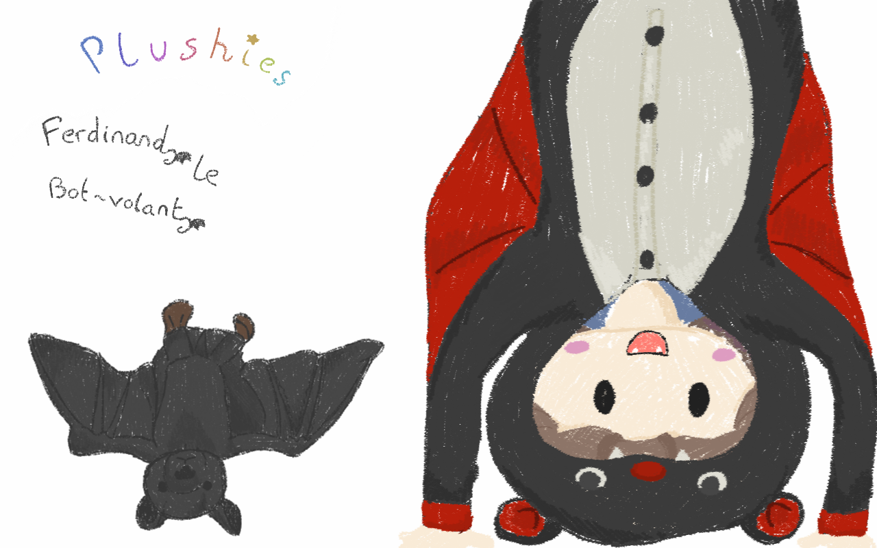 Dites bonjours à Ferdinand ! Comme je suis passionnée par les chauves-souris ma maman m’a offert une peluche, avec un Kigurumi assorti~ Au début je n’étais pas fan du nom que mes proches lui avait donné, mais maintenant je l’adore ahah !