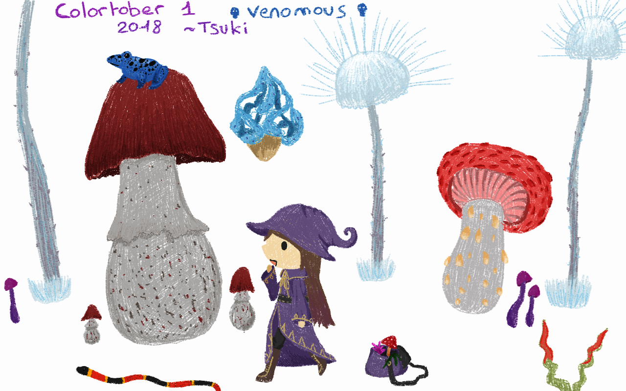 Premier dessin du Colortober de 2018 ! J’ai beaucoup aimé le thème, je me souviens avoir passé beaucoup de temps sur celui-ci !