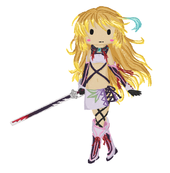 Je l’ai choisie quand j’ai joué au jeu parce qu’elle avait l’air super cool et je suis plus habile avec les personnages utilisant des épées !