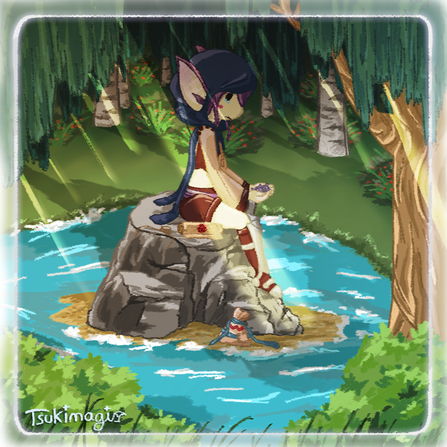 Aujourd’hui ma petite Tsuki est à l’honneur avec une illustration pour une quête de la Confrerie d’Artem ! L’intitulé était « Le poids du lègue » !