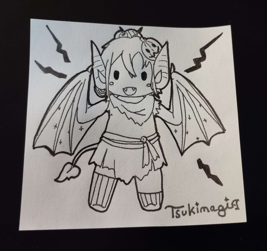 Petit doodle de Tsuki déguisée pour Halloween 2022 o/ Je dessine très peu sur feuille au propre du coup c’était assez plaisant de tenter ce format sur post-it ! J’aimerais bien en réaliser d’autres !