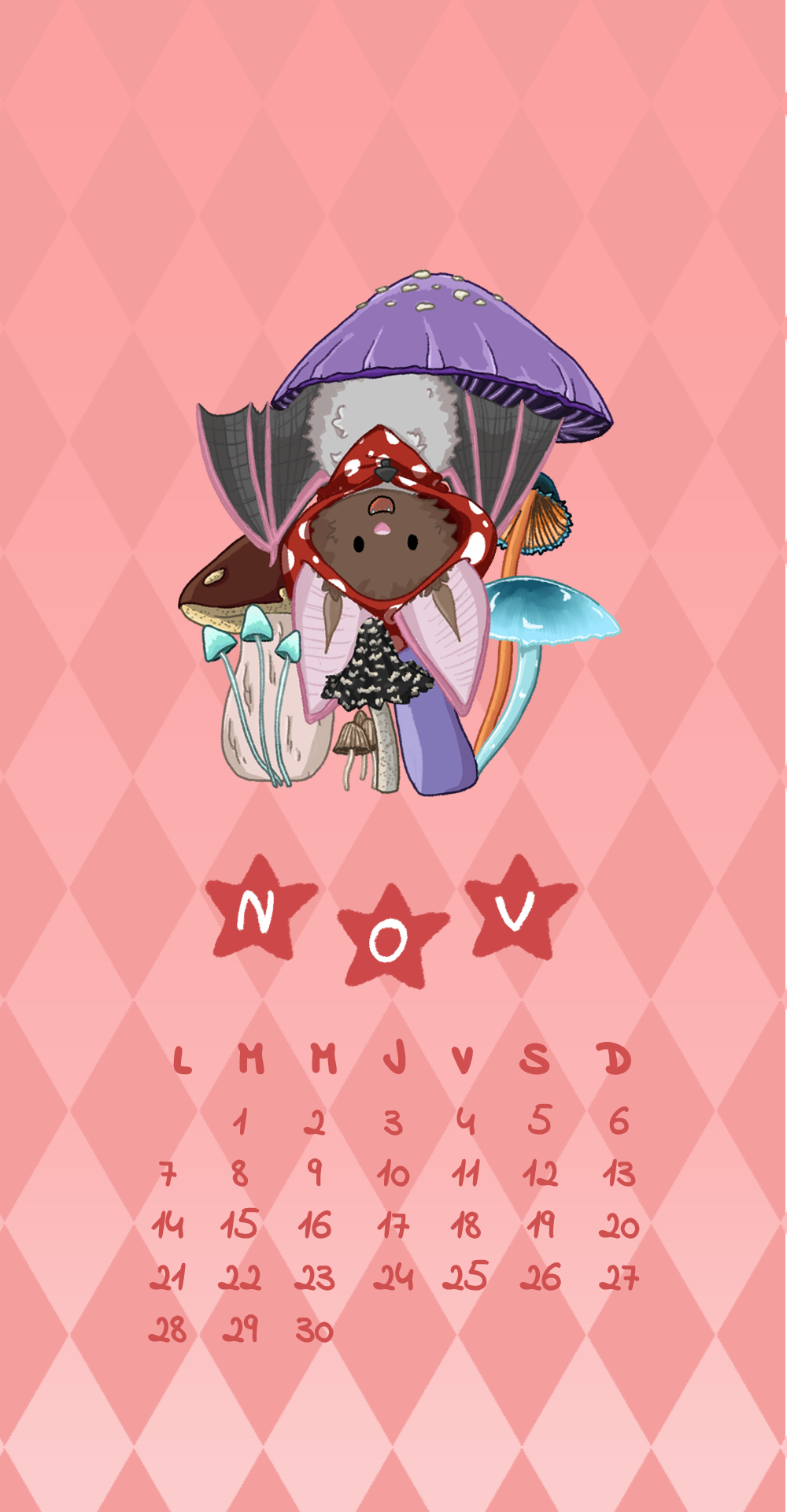 Nouveau calendrier pour le mois de Novembre avec mon petit Irvin parti en quête de champignons ! N’hésitez pas à télécharger et à me dire si cela vous plait !