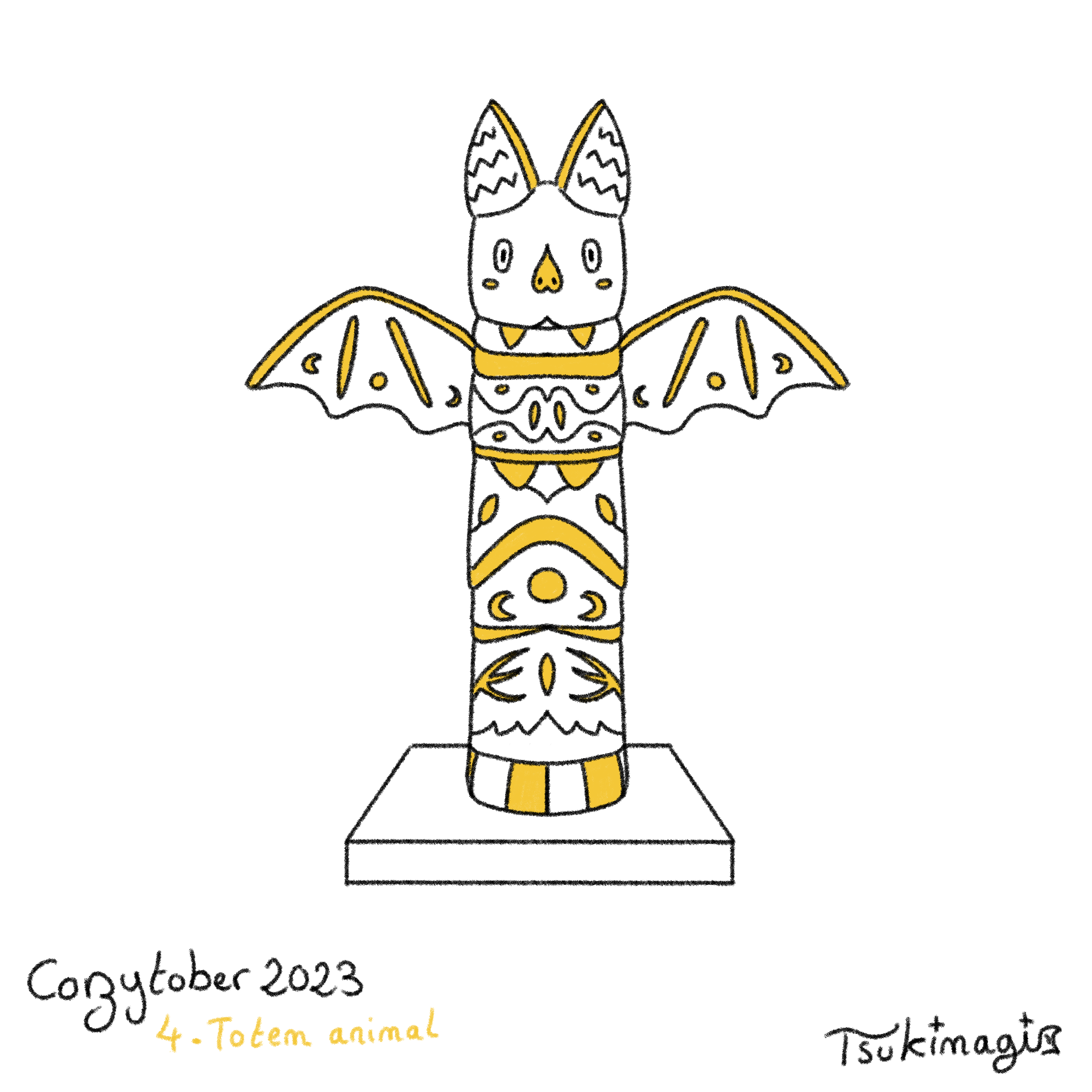 J’ai beaucoup aimé designer mon petit totem chauve-souris 🦇 N’hésitez pas à faire offrande d’un petit fruit au dieu des Chauves-souris afin qu’il bénisse vos nuits ! 🌕