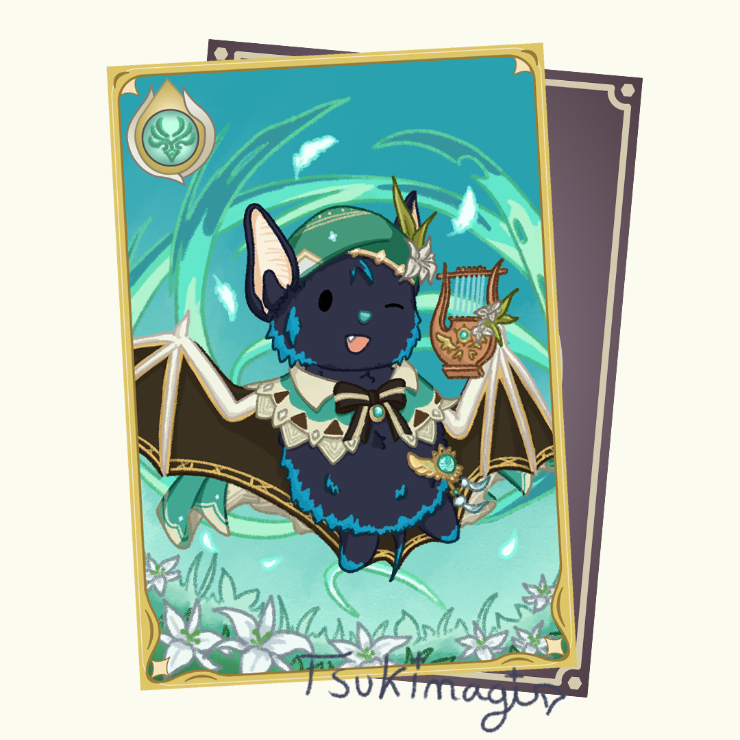 Ce projet est parti de la combinaison d’un petit jeu de mot : « Genshin In Bats »… et de ma passion pour les cartes à collectionner 💦 Comme je n’arrivais pas à le sortir de ma tête, je me suis lancée et voilà !