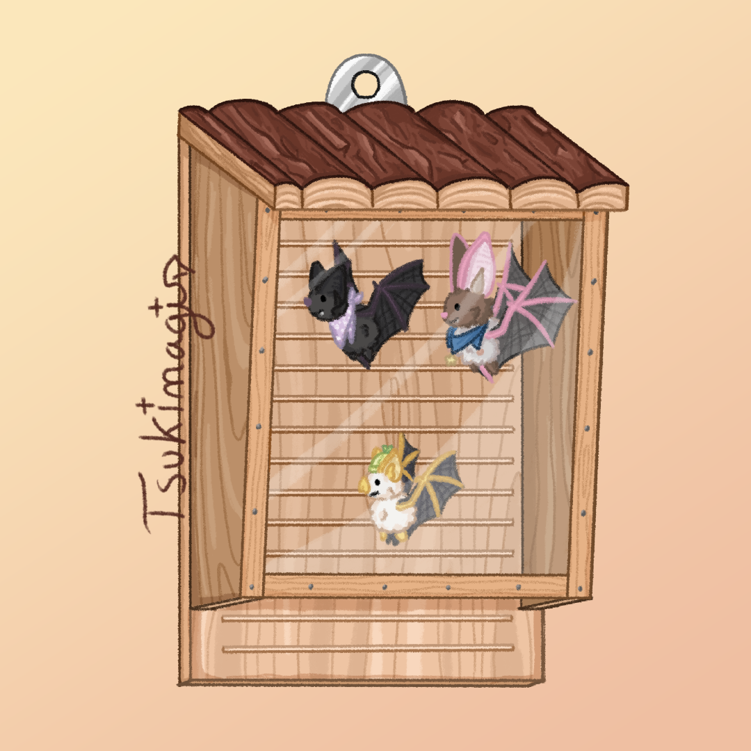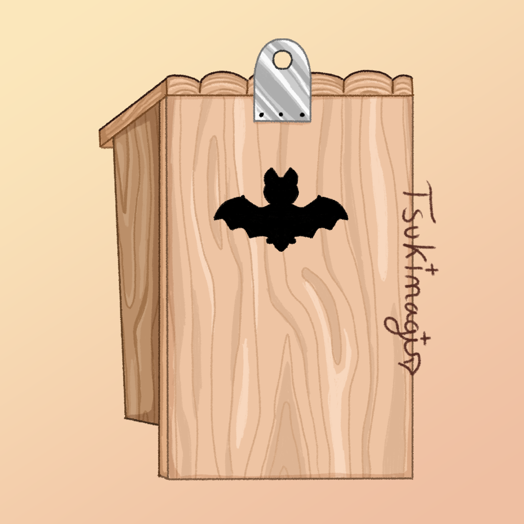 Ma petite boutique ayant pour nom « Le Nichoir à Gribouille », j’avais hâte de dessiner un nichoir à chauve-souris et je voulais vraiment en faire un petit article rigolo ! 🦇