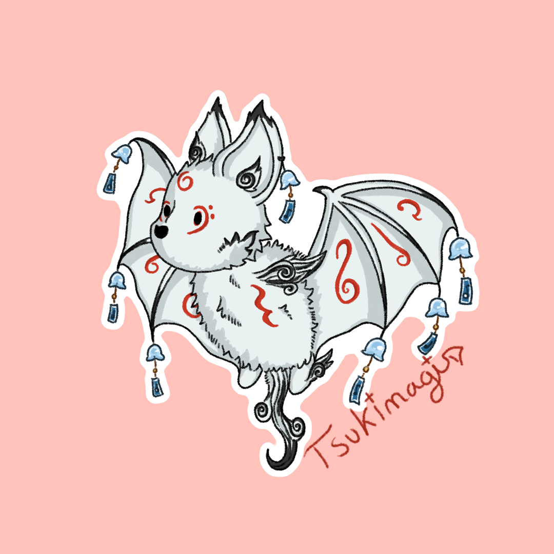 Je suis une très grande fan du jeu Okami, et un soir j’ai eu soudainement très envie de créer mon propre kami chauve-souris et d’imaginer à quoi il ressemblerait dans le jeu…