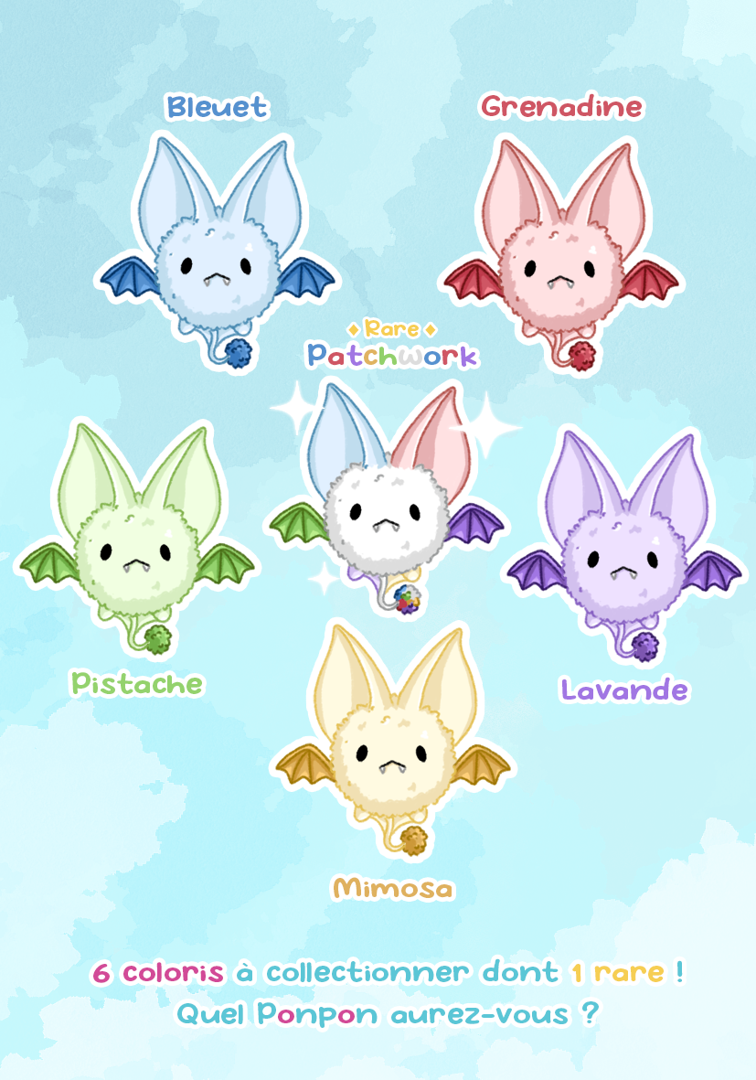 En tant que grande collectionneuse et acheteuse compulsive de Gacha en tout genre, j’avais très envie de travailler sur un petit projet de « sachet mystère » 🦇 Et qui de mieux que Ponpon pour ça ?