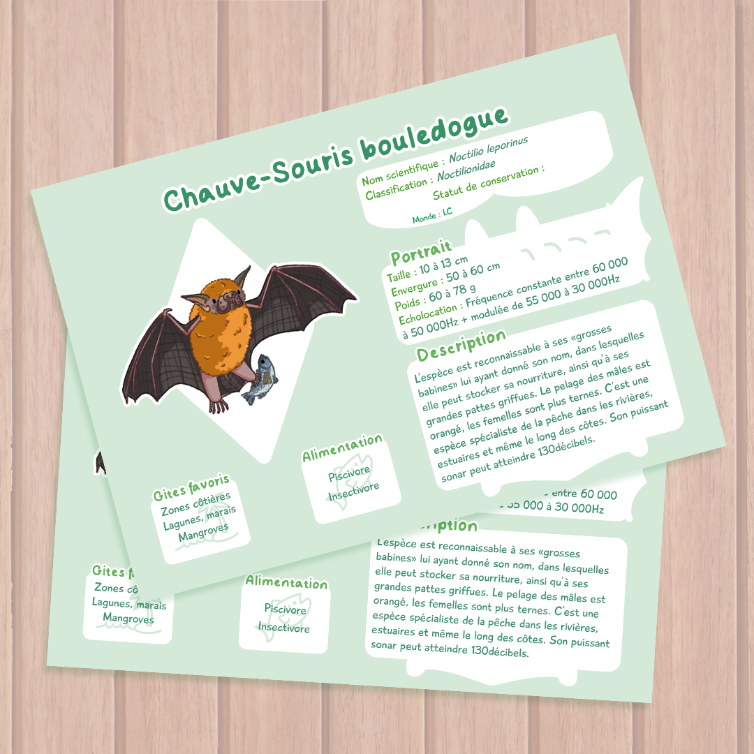 Je vous invite à vous reporter à la première fiche consacrée à la Chauve-souris blanche du Honduras pour plus d’information et pour accéder à la bibliographie si cela vous intéresse~