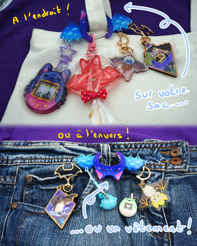 Bien évidemment, mon mousqueton chauve-souris se devait de pouvoir être utilisé à l’endroit comme à l’envers ! 🦇