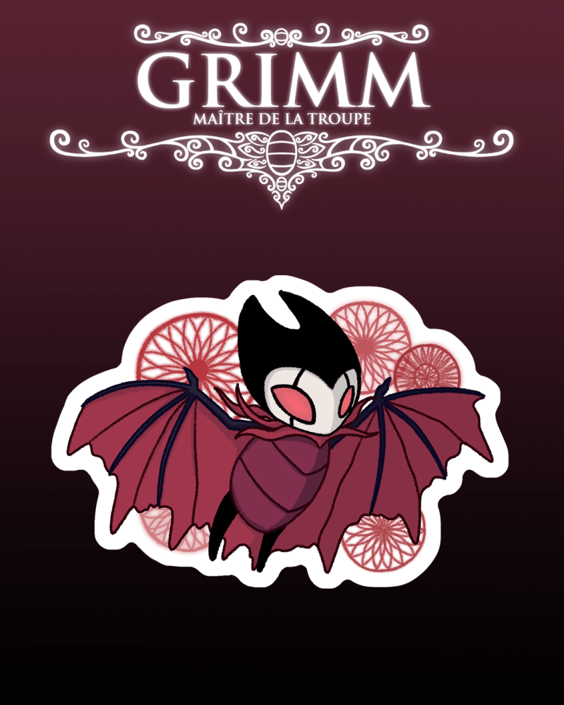 J’ai choisi de commencer par Grimm comme son design est de base assez inspirée par la vibe « vampire »et que dans mon esprit c’est donc déjà une chauve-souris~ J’ai essayé de garder au maximum la patte graphique du jeu tout en y mettant malgré tout mon style personnel, j’espère que cela se voit un peu ?